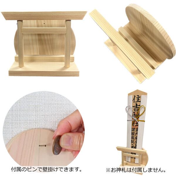 国産ひのき使用 しののめ1社 東雲1社 日本製 鳥居付き壁掛けお札差し お札立て お札受け 簡易神棚 白木 天然木 無塗装 檜 桧